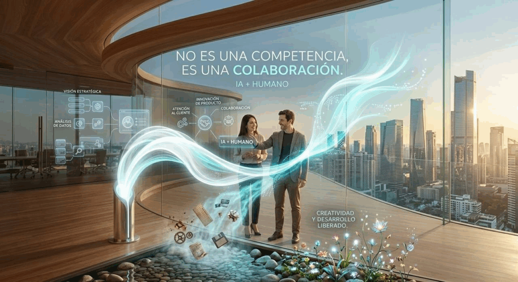 El debate no debería ser «IA vs. Humano», sino IA + Humano. El verdadero valor de la tecnología no está en reemplazar tu trabajo, sino en liberarte de las tareas repetitivas y tediosas.